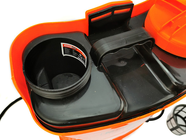 У корпусі литий відсік, в якому зручно зберігати насадки, розхідник, отрутохімікати.